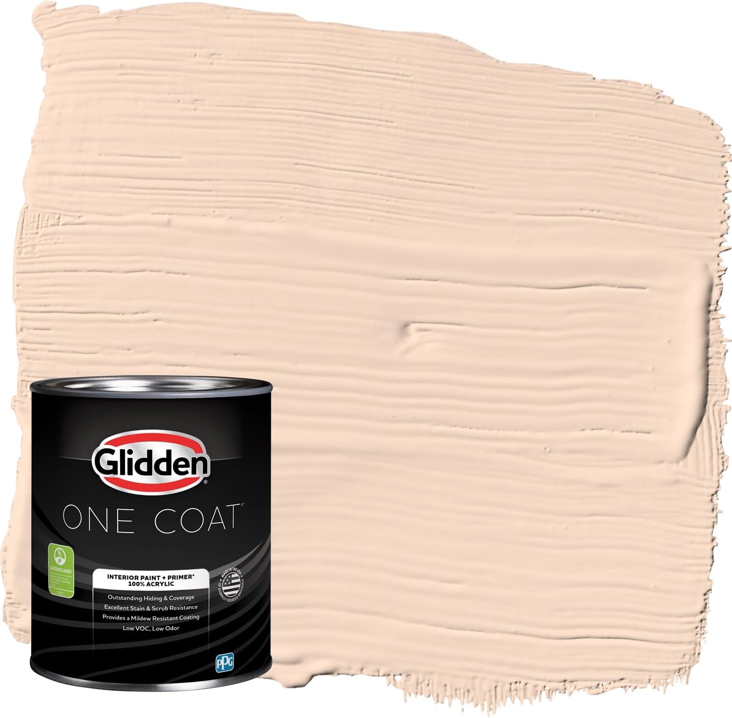 Glidden One Coat interior acrylic paint is a super-premium paint with one coat coverage* to save you time and money. It has exceptional hide and stain block which means you need fewer coats to hide your common stains and make your walls beautiful. It is a paint with so it can stand up to frequent cleanings. Featuring a hand selected palette of over 300 of our most popular paint colors, one easy coat is all you need!